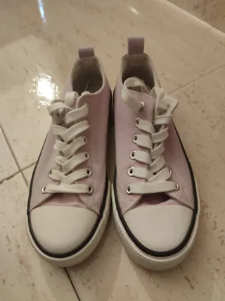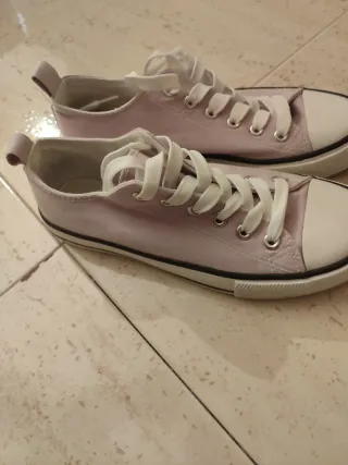 Zapatillas de lona en color lila, con cordones blancos y puntera reforzada. - Diseño bajo. - Suela de goma. - Detalle de tira en el talón.