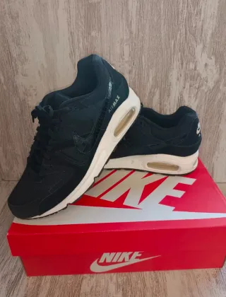 Zapatillas deportivas Nike Air Max en color negro. Diseño moderno y cómodo. - Detalle AIRMAX en el talón. - Suela blanca con amortiguación visible. - Logo de Nike en el lateral. Usadas en tan sólo una ocasión