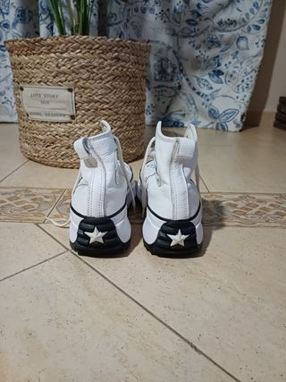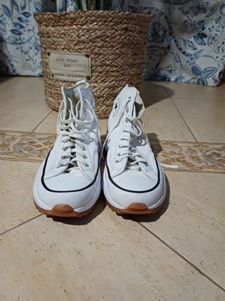 Zapatillas Converse de piel en color blanco. - Diseño de caña alta. - Suela de goma con detalle de estrella. - Cierre con cordones.