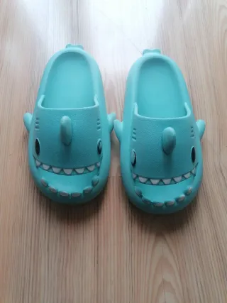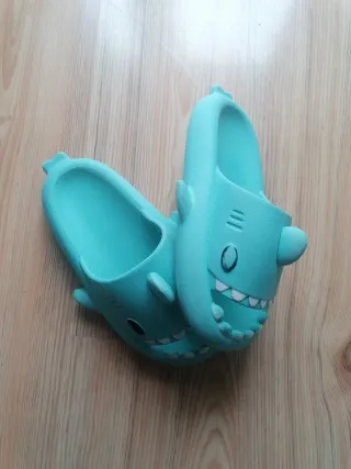 Divertidas zapatillas de andar por casa con diseño de tiburón. - Color: Teal. - Diseño original de tiburón con aletas y dientes.