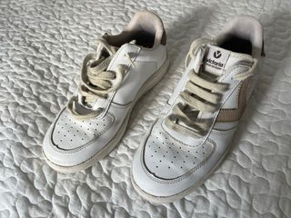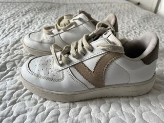 Zapatillas de la marca Victoria en talla 36. - Diseño en color blanco con detalles en beige. - Cierre de cordones.