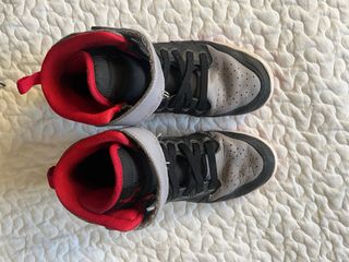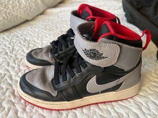 Zapatillas altas de la marca Nike, modelo Air Jordan. - Diseño en negro y gris. - Cierre con velcro y cordones. - Detalle del logo Air Jordan en el lateral.