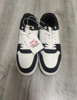 Zapatillas de la marca Don't Call Me Jennyfer con un diseño moderno y llamativo en blanco y negro. Talla 39. Totalmente nuevas con etiquetas. - Combinación de colores blanco y negro. - Cierre con cordones blancos.
