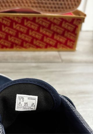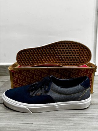 Zapatillas Vans con un diseño moderno y versátil. - Combinación de ante azul marino y tejido vaquero gris. - Cordones azul marino. - Suela blanca. - Detalle de costuras amarillas.