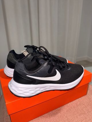 Zapatillas deportivas Nike para mujer. - Diseño en color negro con detalles blancos. - Talla 38.5. - Perfecto estado - Me las compré y me la he puesto 1 vez - 35€ negociable