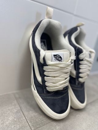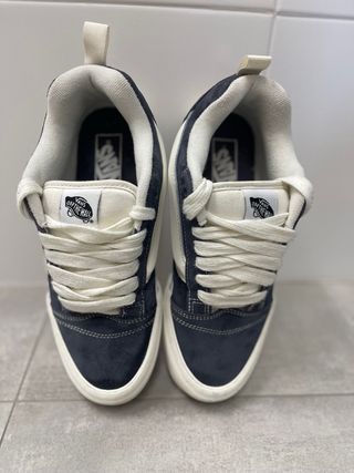Zapatillas de estilo urbano de la marca Vans. - Diseño Knu Skool. - Combinación de colores azul y blanco. - usada 3 veces