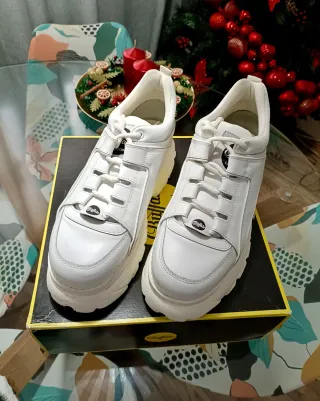 Zapatillas de plataforma de la marca Buffalo en color blanco, solo usadas 1 vez