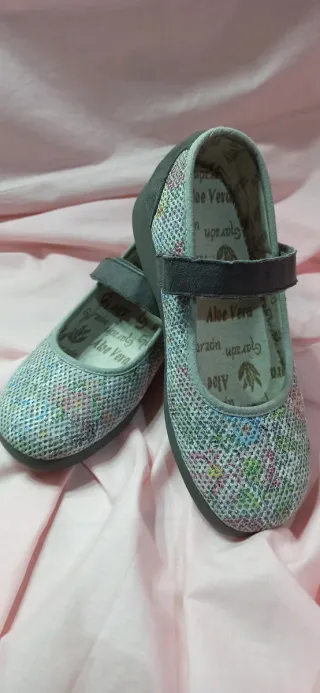 Zapatillas cómodas de la marca Garzón, con un diseño alegre y colorido. - Exterior de malla transpirable con estampado floral. - Cierre de velcro. - Suela flexible y ligera. - Interior con plantilla Aloe Vera Garden.