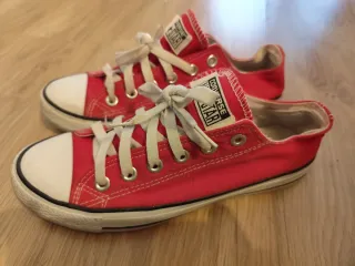 Zapatillas bajas Converse All Star en color rojo. - Diseño clásico de lona. - Cierre con cordones blancos. - Puntera reforzada de goma blanca. - Suela de goma vulcanizada.