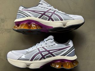 Zapatillas Baskets Gel Kinetic Fluent 1203A591 Glacier Grey Zapatillas de running de moda en nailon - Lengüeta Asics cosida en la lengüeta - Refuerzo en el talón - Rayas Asics en el lateral - Logotipo Asics y tira en el talón Talla en etiqueta: CM 25 Euro 39,5 cm US 6 1/2 UK 5 1/2 BR 37 CN 250 (2.5) Zapatillas deportivas Asics con un diseño moderno y llamativo. Combinación de colores morado y blanco. - Detalle de logo en los laterales. - Suela con amortiguación visible.