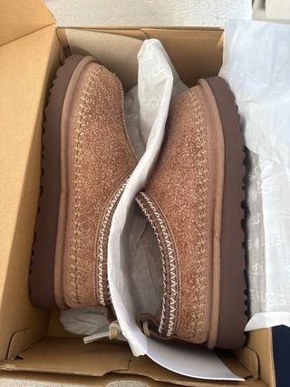 Zapatillas UGG modelo Tasman Biarritz en tonos beige y marrón. Perfectas para un estilo casual. - Diseño con costuras decorativas. - Suela de goma. - Interior forrado.