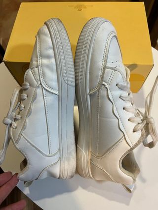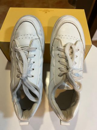 Zapatillas blancas, en muy buen estado. Usadas pocas veces. Cómodas para uso diario. ⚠️ Aclaración importante: en la suela figura talle 39, pero calzan como 38 EU (medida real). Cualquier duda, preguntar sin problema.