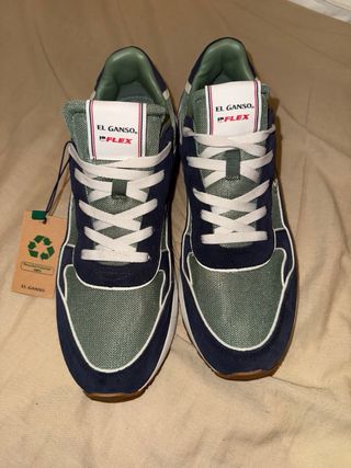 Zapatillas deportivas de la marca El Ganso. - Combinación de colores azul marino y verde. - Diseño deportivo. - Cierre con cordones.