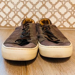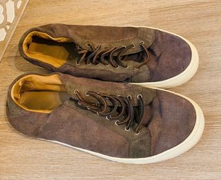 Zapatillas de piel con cordones en colores marrón y beige. Zapatillas talla 44. Solo se realizan envíos 📦.