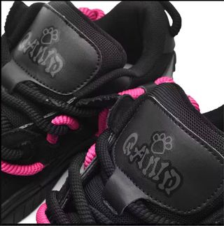 Zapatillas de diseño moderno con detalles llamativos. - Cordones gruesos de color rosa. - Combinación de materiales en el exterior. - Suela robusta y negra. precio negociable