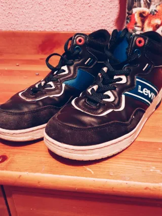 Zapatillas altas de la marca Levi's. - Diseño en color negro con detalles en azul. - Cierre con cordones.