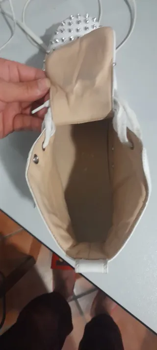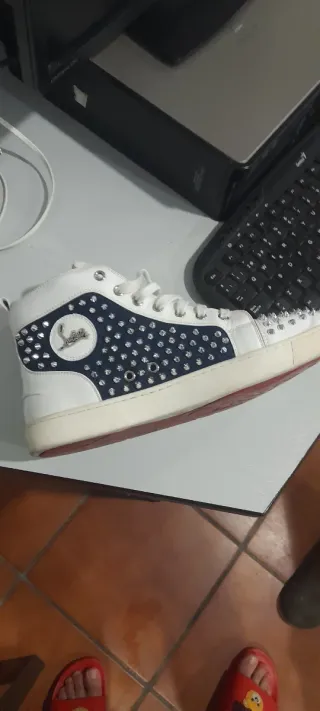 Zapatillas altas de la marca Christian Louboutin en color blanco, con detalles de tachuelas plateadas. - Diseño de caña alta. - Cierre con cordones. - Tachuelas metálicas decorativas.