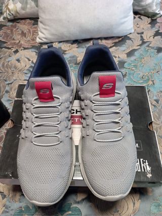 Zapatillas deportivas Skechers con un diseño moderno y cómodo. - Parte superior de malla transpirable. - Detalle de cinta en color rojo con el logo de la marca. - Cordones elásticos para un ajuste fácil.