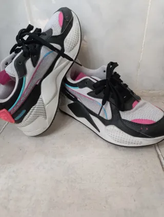Zapatillas deportivas Puma modelo RS-X 3D. Sin caja. - Diseño moderno con detalles en rosa y azul. - Parte superior de malla transpirable. - Suela de goma para mayor agarre.
