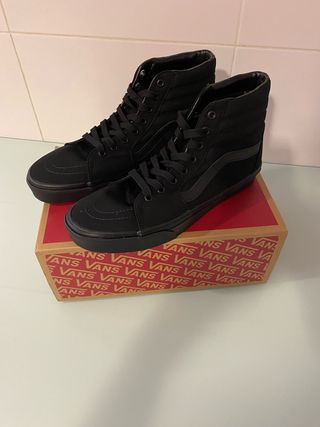 Zapatillas altas de la marca Vans. Color negro. Modelo Sk8-Hi. Talla 42. Composición: exterior lona resistente, suela de goma. Nuevas, sin estrenar.