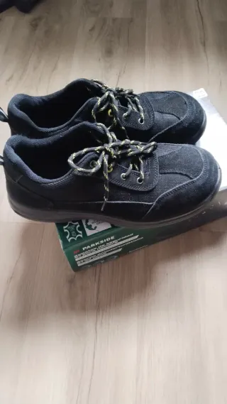 Zapatos de seguridad S1 para hombre, marca Parkside. Color: negro Característica: puntera de acero Particularidad: elementos decorativos reflectantes - Cierre con cordones. - Diseño deportivo. Completamente nuevas, se han usado 3 días. Vendo por cambio de empleo zapatillas de Christian