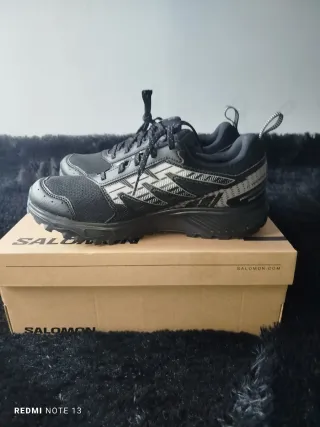 Zapatillas de senderismo Salomon Wander GTX W para mujer. - Color negro y gris. - Diseño deportivo y funcional.