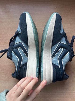 Zapatillas deportivas de la marca Kalenji. Se hace la entrega en mano. - Diseño en malla transpirable. - Detalles en color turquesa. - Cierre con cordones.