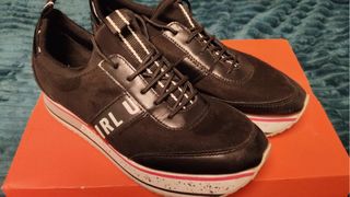 Zapatillas de diseño moderno y llamativo. Puestas un par de veces. - Detalle de logo en la lengüeta. - Cordones con inscripción de la marca. - Suela de goma transparente.