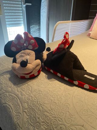 Conjunto de mono de Minnie Mouse con zapatillas de casa a juego. - Mono con estampado de Minnie Mouse. - Zapatillas de casa con diseño de Minnie Mouse.