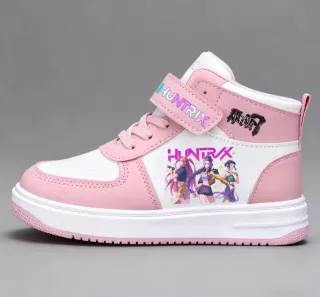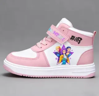 Zapatillas de estilo botín con un diseño inspirado en el K-Pop. Talla desde la 26 asta la 31 - Cierre de velcro y cordones. - Estampado de estrellas y personajes. - Detalle de logo HUNTRIX en la tira.
