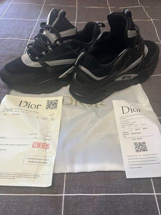Zapatillas Dior B22 en color negro con detalles plateados. Un diseño moderno y urbano. - Combinación de malla y piel. - Suela gruesa y cómoda. - Detalle de logo en el lateral.