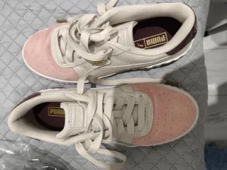 Zapatillas Puma para mujer con un diseño moderno y detalles en dos tonos. - Combinación de colores beige y rosa. - Materiales de calidad.