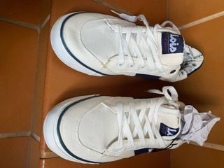 Zapatillas deportivas Fila en color blanco. Presentan signos de uso y desgaste. - Cierre con cordones. - Detalle de logo en los laterales. - Suela con diseño dentado.