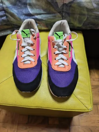 Ofertas: 1 par de zapatillas, con un diseño moderno y llamativo, lleva el logo de( puma),por todos lados,no son nuevos ,de ahí su precio,no hago envíos,venta en persona .