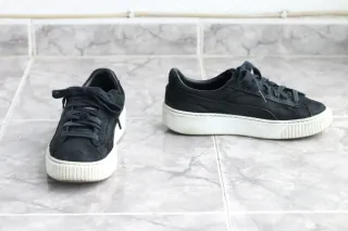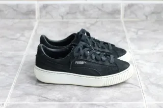 Deportivas Puma suede con plataforma en color negro y blanco. Talla 38'5, 24'5cm Tienen uso pero están en buen estado, como se ven en las fotos. Son unisex, tanto para chica como para chico o niña / niño. Son cómodas y muy bonitas. Hago envíos sólo VÍA WALLAPOP. Cualquier duda, preguntar sin miedo. Pásate por mi perfil a echar un vistazo :)