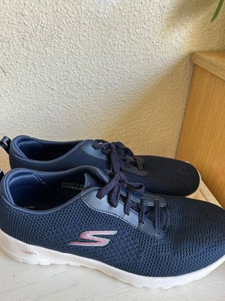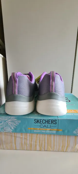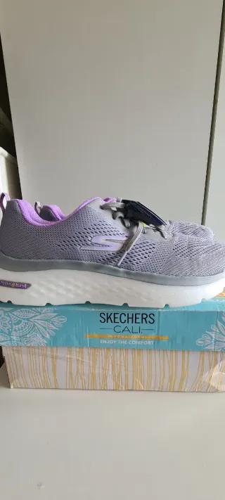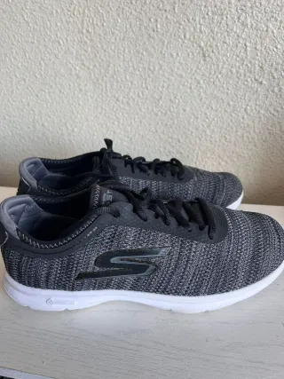 Zapatillas deportivas Skechers GOWALK en tonos grises y morados. Perfectas para caminar y para el día a día. - Diseño transpirable. - Suela cómoda y ligera. - Cierre con cordones. Número 33,pero pie 30cm,como Número 45