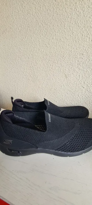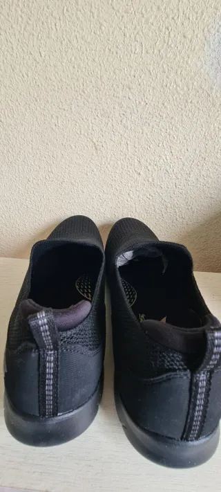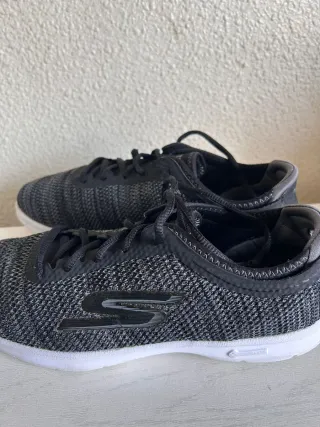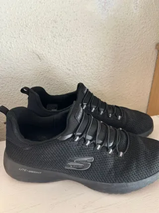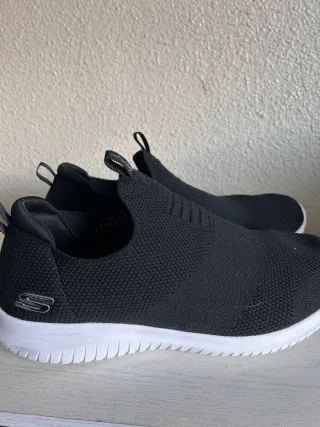 Zapatillas deportivas Skechers en color negro. Diseño moderno y cómodo. - Parte superior de malla transpirable. - Cierre elástico. - Suela ligera. Por dentro desgastado,bien para trabajará