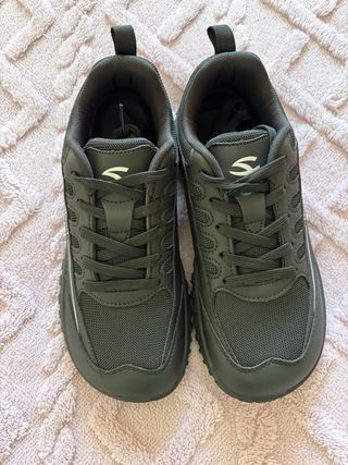 Zapatillas deportivas de la marca WAU en talla 40. - Combinación de colores negro y verde. - Diseño moderno y casual. Las vendo porque me he puesto plantillas y no me sirven. Zapatillas casi sin utilizar como se puede ver. Las zapas costaron 79€
