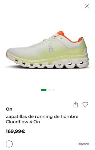 Zapatillas de running On Cloudflow 4 para hombre en color blanco y amarillo. Diseñadas para ofrecer comodidad y rendimiento en cada carrera. - Modelo Cloudflow 4. - Marca On. - Color blanco y amarillo.
