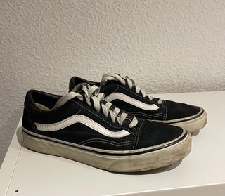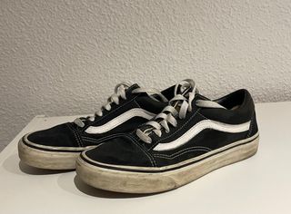 Zapatillas de la marca Vans en color negro con detalles en blanco. - Diseño clásico. - Cordones blancos.