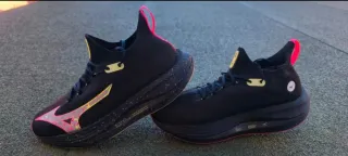 Zapatillas deportivas Mizuno Neo Vista en color negro con detalles en rosa. - Nueva prácticamente muy apenas usada,sin desperfecto alguno!! - Diseño moderno y llamativo. - Parte superior de malla transpirable. - Suela con amortiguación. - Cierre con cordones.