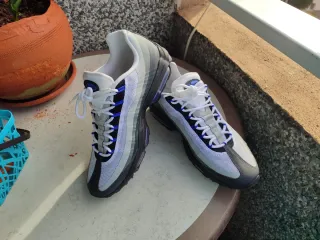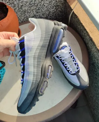 Precio original 189'99€. Fue un regalo y me vienen grandes, puestas 2 veces, entrego con la caja original. Zapatillas deportivas Nike Air Max 95 UL. - Diseño con capas superpuestas en tonos grises y blancos. - Detalles en azul vibrante en los ojales y la unidad Air. - Malla transpirable en la parte superior.