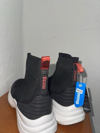 Zapatillas Mustang de caña alta, con un diseño moderno y cómodo. - Parte superior de tejido elástico negro. - Suela blanca de goma. - Detalle de tira en el talón.