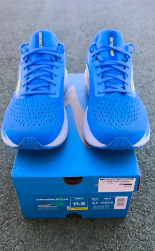 Zapatillas deportivas Brooks Adrenaline GTS 24 en talla Wide. Diseñadas para ofrecer comodidad y soporte. -Nuevas a estrenar (originales) factura disponible para certificar autenticidad. - Color azul con detalles en blanco y verde lima. - Malla transpirable en el upper. - Suela con amortiguación. - Logo de Brooks en los laterales y la lengüeta.