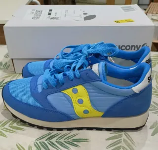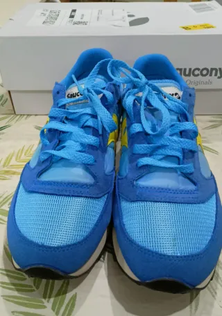 Zapatillas deportivas Saucony con un diseño llamativo. - Combinación de colores azul y amarillo. - Cordones azules. - Detalle de logo en amarillo.
