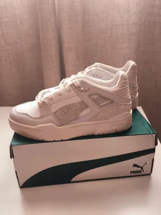 las zapatillas Puma Slipstream, un modelo clásico de baloncesto de los 80 rediseñado para el estilo urbano actual. Se identifican como la versión baja (Low) en un color predominantemente blanco o blanco roto.