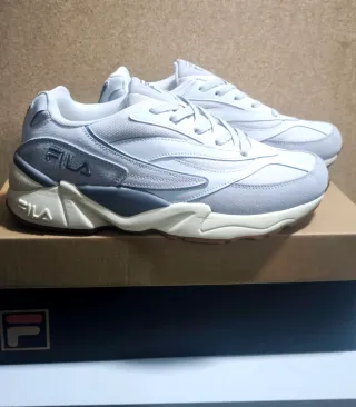Zapatillas Fila V94M en tonos grises y blancos. - Diseño moderno y deportivo. - Combinación de materiales en el exterior. - Suela de goma para mayor tracción.