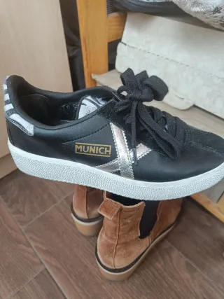 Zapatillas Munich con un diseño moderno y detalles llamativos. - Combinación de colores plata y beige. - Logo de la marca en los laterales. - Etiqueta de autenticidad Munich STB. -Están sin estrenar por error en el número