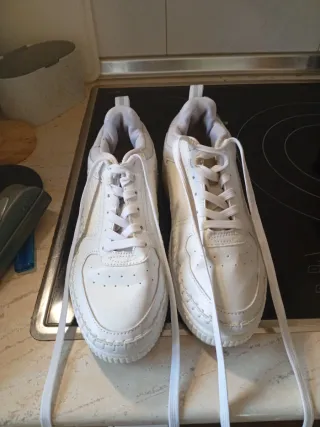 Zapatillas de mujer en color blanco. Diseño moderno y cómodo. - Cierre con cordones. - Suela gruesa y de plataforma. - Detalle de tira en el talón.solo puestas una vez no hago envío solo presencial en Puertollano gracias