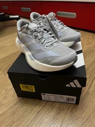 Zapatillas nuevas sin estrenar con caja y etiquetas. Adidas adizero Evo SL en tonos grises y blancos. - Diseño moderno y ligero. - Detalles de las tres rayas icónicas de Adidas.